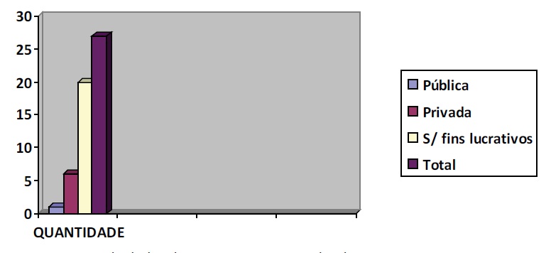 Concernente a este último, ressalta-se que consta na lista da Diretoria de Vigilância em Saúde da Vigilância Sanitária do Município (VISA) o quantitativo total de 27 ILPI’s. Além de ratificar a informação supracitada, o questionário aplicado na fase de execução da pesquisa-ação Curatelando identificou a predominância de determinada natureza jurídica, a saber: s/fins lucrativos, conforme demonstra o gráfico a seguir: