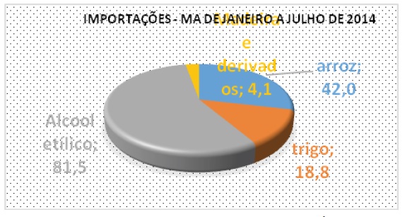 Percebe-se a partir dos dados, a primarização e a relação de dependência da economia maranhense. Exportam-se grãos de milho e importam-se derivados, assim como importa-se arroz polido e parboilizado.