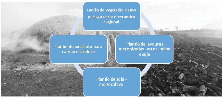 O crescimento de lavouras de soja demonstrado na MRH se dá sobre as áreas de chapadas, em um sistema que articula a retirada da cobertura nativa para produção de carvão e implantação de lavouras de soja na sequência. No entanto, a pesquisa mostrou que o eucalipto na região é inerente ao modelo, ocupando parte das áreas antes cultivadas com soja.
