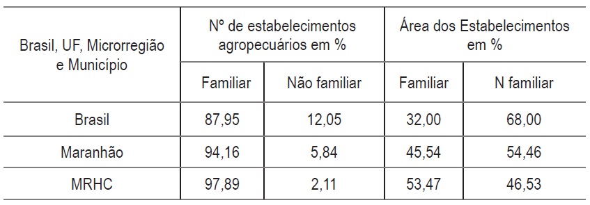 Constituída de 97,89% de estabelecimentos agropecuários familiares e de 2,11% não familiares (IBGE/2006) a MRH em estudo, não deixa dúvidas sobre a presença camponesa acima mencionada.