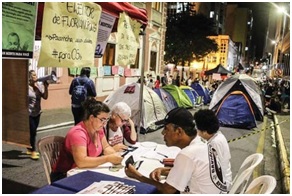 Passados dois dias da Inconfidência Mané, mais de 6.000 servidores reunidos em assembleia deliberam por manter a greve e intensificar o diálogo com a população. A Prefeitura corta o ponto dos trabalhadores e passa a descontar todos os dias parados. O movimento se radicaliza e, no vigésimo nono dia de greve, servidores e movimentos sociais organizados acampam em frente à Prefeitura (Foto 3).