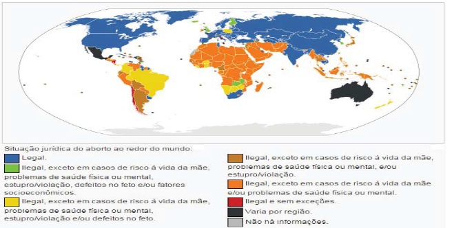 Em sentido contrário ao restante do globo, o Brasil pretende criminalizar o aborto seja qual for o caso, inclusive quando a gravidez ocorre em decorrência de estupro. Em estudo comparado, se vê que a maioria das legislações internacionais permite o aborto nesses casos, a exemplo da Argentina, Áustria, Alemanha, Bélgica, Bolívia, Costa Rica, China, Chile, Dinamarca, Equador, Estados Unidos, Inglaterra, Finlândia, Grécia, Guatemala, Hungria, Islândia, Itália, Japão, México, Nicarágua, Noruega, Paraguai, Uruguai, Venezuela e Iugoslávia. (MORAIS, 2008). A figura a seguir ilustra a situação dos países da América Latina com relação à prática do abortamento.