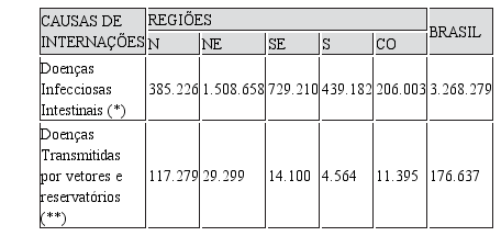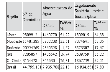 A incidência de doenças por veiculação hídrica, bem como os maiores coeficientes de mortalidade infantil, são maiores nas regiões menos desenvolvidas do país e nos municípios de menor renda. O quadro apresentado a seguir permite fazer esta constatação.