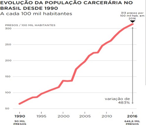 Um exemplo interessante da relação entre política social e justiça penal poderia vir da relação entre o programa Bolsa-Família, de transferência condicionada de renda, e do encarceramento: ambos tiveram mais ou menos as mesmas camadas socioeconômicas como alvo, quais sejam, aquelas com maior vulnerabilidade social e reduzidas oportunidades de emprego (em razão da baixa escolaridade e discriminação racial), ficando às mulheres e crianças o benefício de renda condicional, e aos homens e jovens adultos o peso do cárcere, sendo legítima a hipótese de que muitas famílias pobres são impactadas ao longo do tempo (ou ao mesmo tempo) tanto pela assistência federal quanto pela criminalização e encarceramento. Num caso como no outro, como beneficiários de transferências de renda ou como submetidos ao cárcere, acabam sendo consumidores subsidiados. Nesse sentido, na análise da trajetória da população carcerária brasileira, além da óbvia sobre-representação de negros, jovens e de baixa escolaridade, um aspecto que chama a atenção é a importância do uso da prisão em flagrante e da prisão provisória e da repressão à circulação ilícita de mercadorias entre as camadas populares (crimes de drogas e contra o patrimônio), em detrimento da investigação criminal, das condenações judiciais e da repressão aos crimes contra a pessoa.7