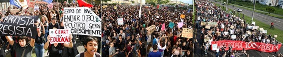 O estopim da tensão gestada nos primeiros meses do novo Governo ocorre dia 29 de abril, quando Abraham Weintraub – segundo Ministro da Educação do governo Bolsonaro – afirmou em entrevista ao Jornal O Estado de São Paulo4 que cortaria 30% das dotações orçamentárias anuais de três universidades – UnB, UFF e UFBA – por estarem promovendo balbúrdia em ambientes educacionais. Como exemplo de situações inapropriadas para uma instituição universitária, o Ministro apontou Sem Terras e ‘pessoas peladas’ correndo pelo campus universitário.