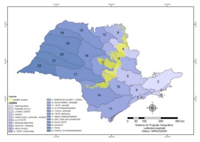 Keywords: Groundwater, Guarani aquifer, Water resources policies, Outcrops, Water Resources Management Units (UGRHIS) of the State of São Paulo.