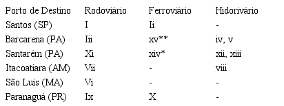 Além disso, destaca-se também a importância dos portos da região norte do país. Tanto em termos de custo como em termos de emissão de CO2, tais portos se mostram mais eficientes para uma parcela significativa dos municípios mato-grossenses, apesar de os portos de Santos (SP) e Paranaguá (PR) ainda serem bastante representativos nas exportações do Estado.