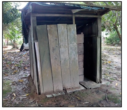 Essa situação é visível quando se observa a destinação dos dejetos humanos nas comunidades ribeirinhas do Amazonas; em geral faz-se uso de “fossas negras” ou “buraco negro”, escavações no solo para armazenar os dejetos humanos, prática que afeta a salubridade dos moradores e danos ao meio ambiente, pois a deposição de dejetos no solo pode contaminar os cursos d’água e até mesmo os lençóis freáticos. Essas instalações construídas na parte externa das moradias (Figura 1) com tubulações ligadas aos banheiros das residências (Figura 2).