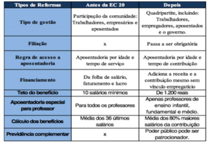 Conforme descrito, torna-se evidente o início de um percurso neoliberal que abarca o sistema previdenciário a partir das reformas estipuladas pelo presidente da república Fernando Henrique Cardoso (FHC) por meio da EC 20/1998.