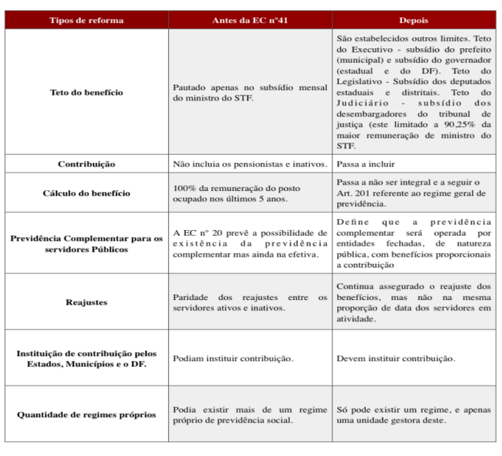 Ressalta-se ainda que, nessa proposta, as aposentadorias especiais foram praticamente eliminadas; somente os professores (com exceção dos que atuam em universidades) e pessoas de locais insalubres mantiveram seus direitos conforme o texto da Emenda nos parágrafos 4º e 5º do artigo 40. Em seguida, na gestão Lula é aprovada a Emenda Constitucional nº 41, de 19 de dezembro de 2003, sendo instituído um novo teto aos servidores2 do Regime Geral junto à contribuição dos beneficiários do sistema, denominada (por) “taxação dos inativos”.