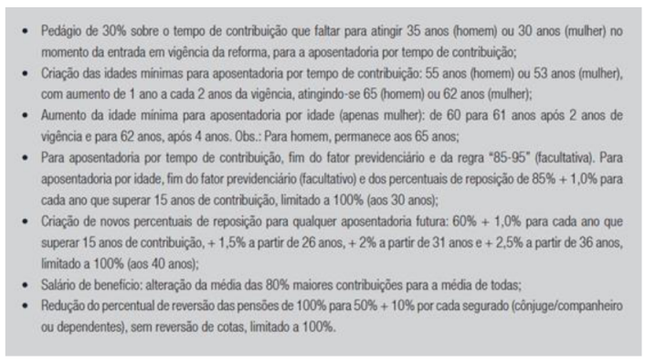 Na opinião de Schmidt (2017), a PEC almeja apenas retardar a aposentadoria e, para isso, estipula duros requisitos. Essa PEC nº 287 ainda tramita no senado. Mas aumento de idade e de tempo de contribuição são a nova realidade do país. Silva (2018, p.131) acrescenta que essa emenda constitucional é a mais agressiva já vista na história da previdência brasileira, visto que: “Ainda que parcialmente modificada pelo seu relator, antes da submissão ao plenário da Câmara Federal, sua eventual aprovação ou de seu substitutivo trará prejuízos aos trabalhadores e aprofundará as desigualdades sociais no país, sob diversos ângulos”.