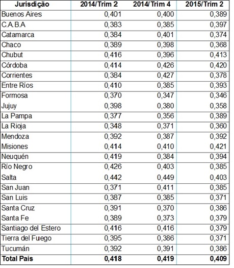 Esta opção argentina pela via constitucional e pela possibilidade de criação de novas regiões podem criar arranjos institucionais mais adequados para a promoção de políticas regionais mais adequadas para a população. Porém, a desconfiança com as novas medidas reside no fato de que as desigualdades regionais poderiam ser aprofundadas, desequilibrando, em contrapartida, a árdua manutenção dos checks and balances. Os dados da tabela abaixo, contendo o índice de Gini de cada província são elucidativos para a compreensão da desigualdade existente na Argentina: