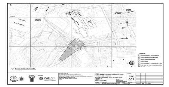 O presente trabalho apresenta reflexões a partir de uma pesquisa em andamento3, e baseia-se em uma análise sobre o projeto de Assistência Técnica de Habitação de Interesse Social (ATHIS), possibilitado com base na Lei Federal nº 11.888/2008, com recursos provenientes do Conselho de Arquitetura e Urbanismo do Estado do Rio de Janeiro (CAU-RJ). O objetivo desse projeto era realizar a pesquisa preliminar para a constituição do condomínio especial, cuja convenção deve ser registrada junto com a sentença declaratória da usucapião coletiva especial urbana. Apesar da produção de dados, não foi dada continuidade ao registro da convenção de condomínio devido aos impedimentos impostos pela pandemia de covid-19.