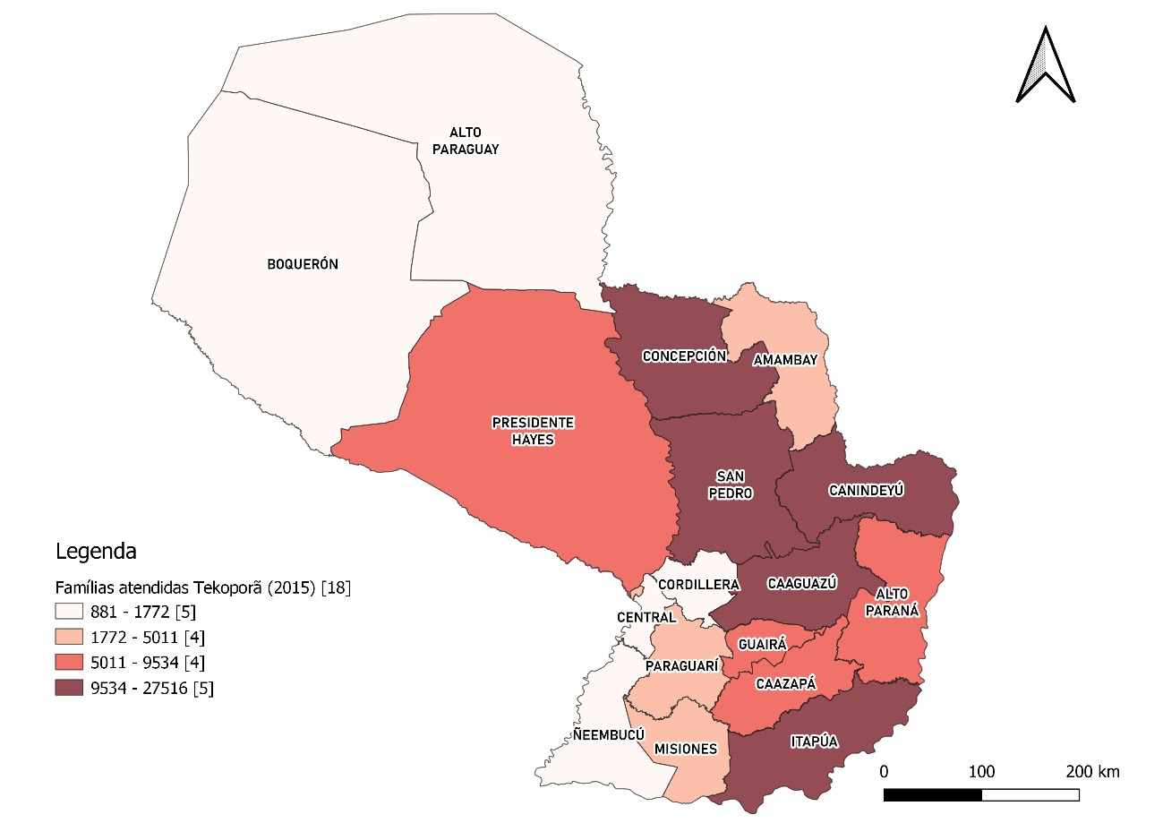 A região de Concepción, que não aparece no censo de 2015 e de 2017, é de alta concentração de comunidades indígenas, e a dificuldade de acesso pode ser um dos motivos para sua desconsideração. Se em 2004 havia 13 departamentos na situação de extrema pobreza, em 2015 apenas 3 permanecem, todas regiões agrícolas. Caazapá é um departamento que chama atenção, já que está no alto nível de pobreza, porém não é um departamento altamente atendido pelo Tekoporã, o que reverbera na situação de pobreza deste em 2017.