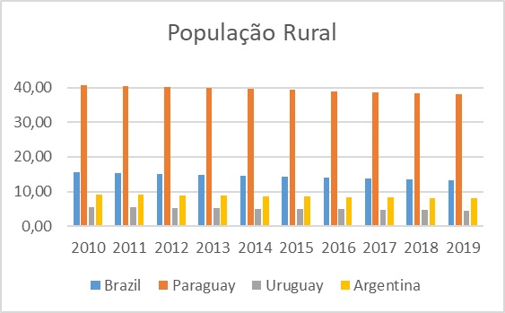 Quando se analisa a população rural do Paraguai, comparado aos demais países do Mercosul, destaca-se o alto número de pessoas morando nas áreas rurais (Gráfico 1), portanto a situação de pobreza, que tende a ser maior nas áreas rurais (FIELDS, 2001), encontra no Paraguai um ambiente onde esse perfil populacional é elevado.