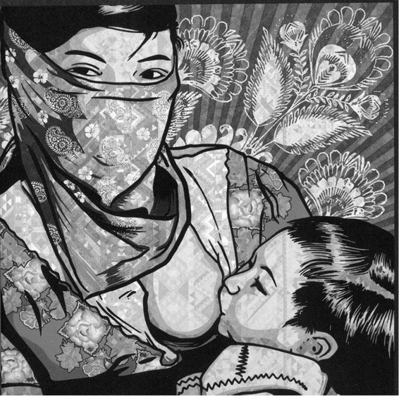 Por otro lado, en el discurso feminista elaborado en Vengo se encuentran distintas referencias a la maternidad, experiencia que es visibilizada y reivindicada, pero no desde una concepción conservadora que busca resituar a la mujer en el espacio de lo doméstico y lo privado. Por el contrario, Tijoux deja entrever que el cuidado de los hijos se puede aunar con la acción política y al decir esto pienso en la imagen de la contraportada del disco donde se observa a una mujer encapuchada30 amantando a su hijo (imagen 4) y en las canciones “Los peces gordos no pueden volar” y “Emilia”, ambas dedicadas a sus hijos. “Soy otra madre que duerme poco pero sueña mucho / Que aprende más de sus hijos que del mundo adulto”, canta Tijoux a su hijo Luciano, a quien enseña a ser “fiel a tus valores” y “resistir” frente al “sucio juego” de los “peces gordos”. La cantante apuesta por transmitir a sus hijos una mirada crítica y reflexiva sobre la sociedad en que les tocó crecer, alejándose de las miradas ingenuas e idealizadas de la infancia y el rol de madre31. La representación de la maternidad –una temática para nada reciente si pensamos en la escritura de mujeres como Mistral– se aproxima, en el caso de la rapera chilena, con la de aquellas mujeres que también pensaron su condición de madres desde el agenciamiento político. Pienso en la canción “Hace falta un guerrillero” de Violeta Parra, donde el deseo de la maternidad implica un deseo de la revolución, así como en las Madres de Plaza de Mayo y la Agrupación de Familiares de Detenidos Desaparecidos para quienes la lucha contra la dictadura se articula desde su vínculo de madres, esposas e hijas.
