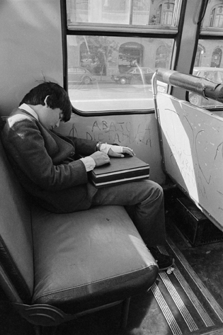 Pienso en la tarea colectiva de producir un nuevo horizonte. Se trata una vez más de una fina, perseverante tarea política para darle sentido al acto de vivir. Me pregunto ahora mismo si conseguiremos despertar al escolar fotografiado por Hoppe, si lograremos que abra los ojos y vea un escenario social proclive capaz de aminorar las catástrofes humanas. Sí, que despierte el joven que encontró dormido el exacto encuadre de Álvaro Hoppe. Que el muchacho con sus ojos muy abiertos se baje de la antigua micro y encuentre un camino seguro hacia un espacio social que realmente lo acoja y lo valore.