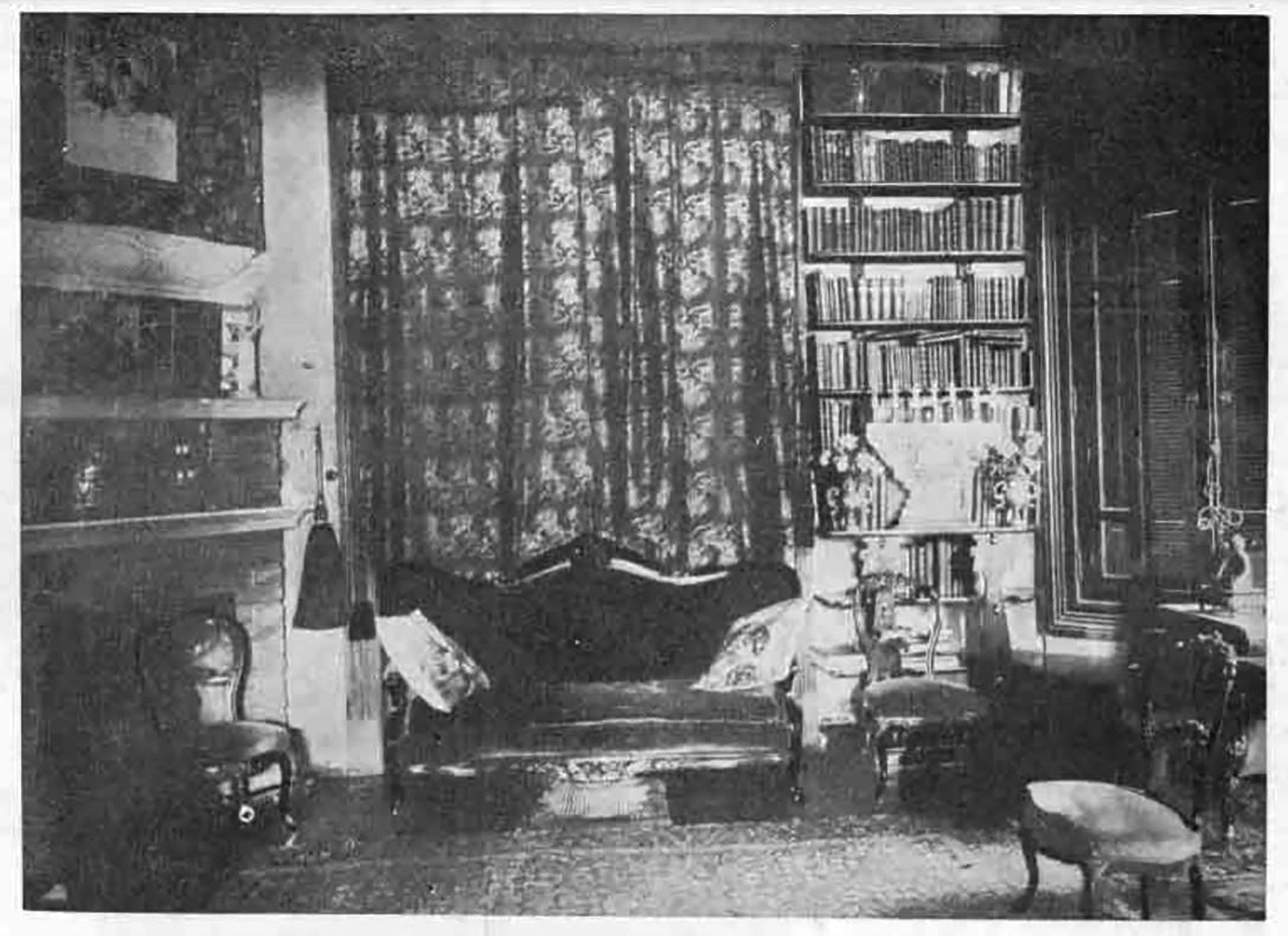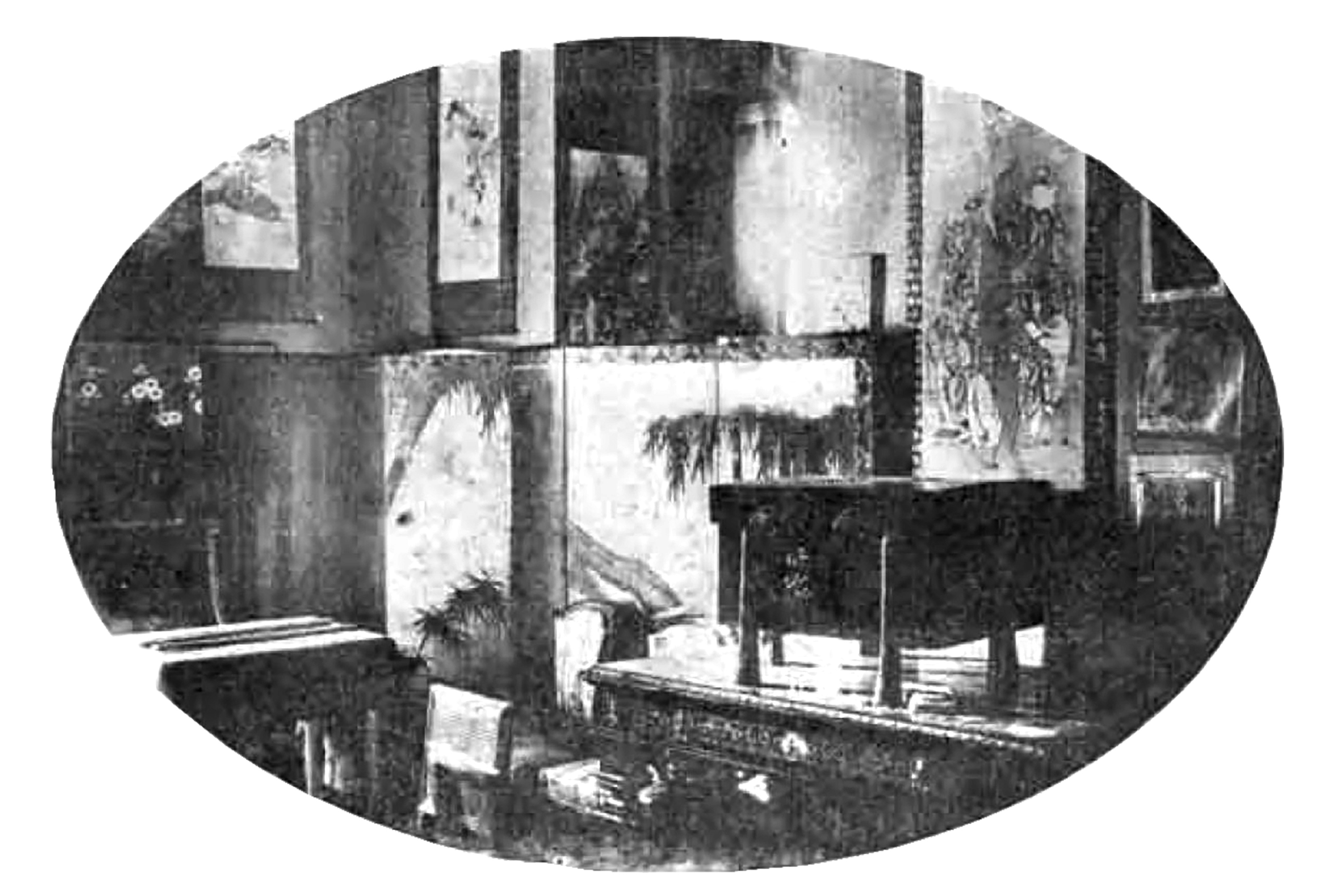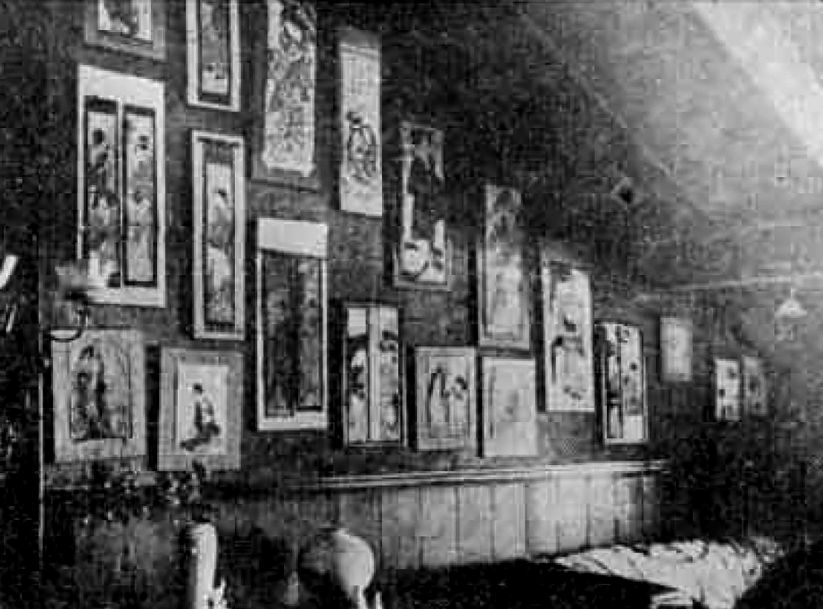 Segunda fotografía: 1916. Se registra un hall adonde, intercalados, asoman ukiyo-e sobre la pared, junto a biombos y cajones lacados. La escena evidencia un atiborramiento del lugar (fig. 3).