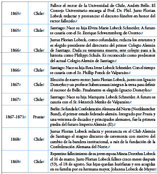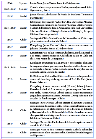 Para efectos del conocimiento de la trayectoria de Lobeck, compartimos la siguiente tabla cronológica y biográfica: