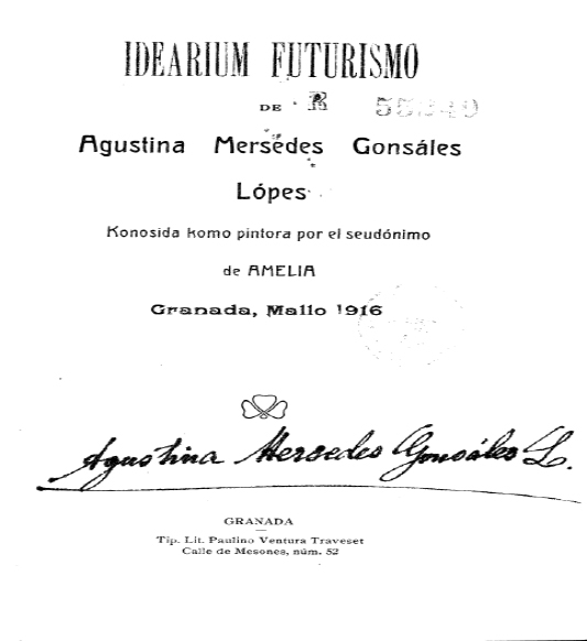 Combinando el afán educativo con el foco textual y lector de los movimientos populares, González López publicaría el opúsculo Idearium futurismo en 1916. Junto a una diversidad de textos de corte político, en el libro se incluía, en apertura, el ensayo “La eskritura futurista”, por medio del cual presentaba una nueva ortografía diseñada, según señalaría, para resolver “las difikultades ortográfikas” (5) del pueblo y facilitar la “trasmisión del pensamiento” (6). La argumentación de la escritora sería clara: la escritura del “español” –término que, en el contexto de un Estado centralista, Agustina escoge para señalar la posición menor de Andalucía respecto del castellano– había generado su ortografía a partir de la variante culta castellana, y ello había de cambiar. La norma estándar habría pretendido la modificación de las pronunciaciones regionales (6) y habría generado, ortográficamente, una suerte de techo de cristal a la hora de aprender a escribir para aquellos no castellanos ni pertenecientes a los estratos y categorías sociales acomodados. El sistema ortográfico futurista pondría solución a ello partiendo de las bases fonológicas de otras variedades regionales, y atajaría, de este modo, las dificultades mnemotécnicas que atravesaban a la población neoletrada: