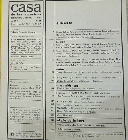 VVAA. “Diez años de revolución: el intelectual y la sociedad”. Casa de las Américas, n.º 56, septiembre-octubre 1969, pp. 7-48.