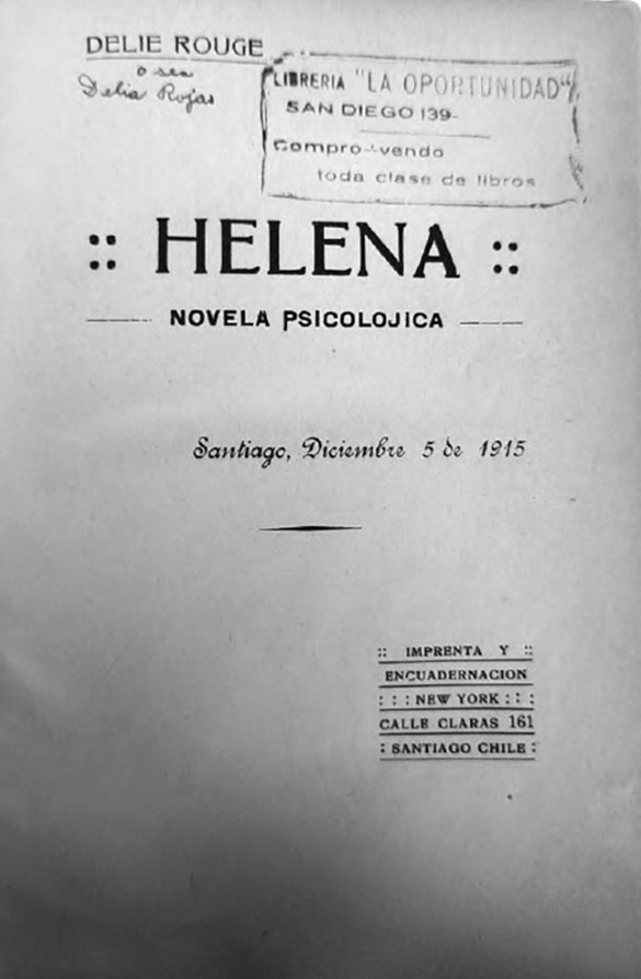 Rouge, Delie.Helena. Novela sicolójica. Santiago: Imprenta y Encuadernación Nueva York, 1915
