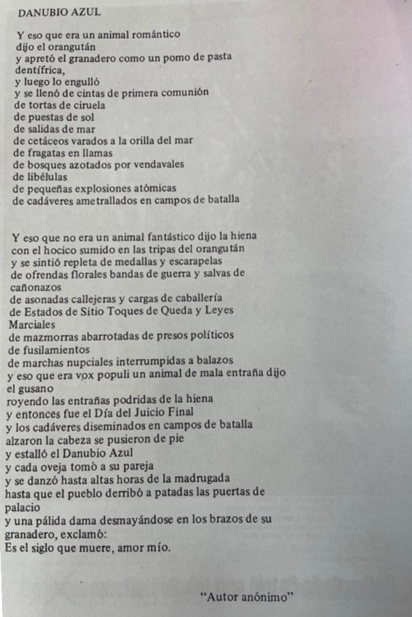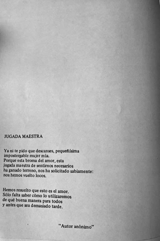 Chile o muerte pareciera haber encontrado el momento de su legibilidad, a 50 años del golpe militar chileno, donde sí es posible acceder sin miedo al registro literario visual compuesto apenas instalada la Junta militar. El volumen publicado en México, así como la decisión curatorial de invisibilizar el nombre de los autores de poemas antologados e imágenes plásticas para proteger literalmente las vidas de esos artistas, el día de hoy pueden ser reconocidos sin más en cuanto sobrevivientes de la violencia estatal tan radicalizada con los cantores19, poetas y artísticas plásticos (imagen 2).