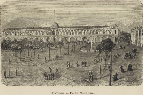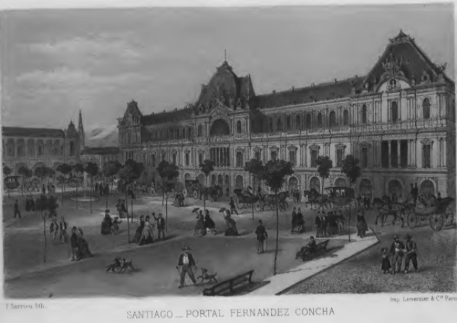 Los visitantes de Santiago en las décadas de 1870 y 1880 encontraron un panorama cambiado y veían en la Alameda y en el nuevo Cerro Santa Lucía la oportunidad de observar una ciudad elegante. En 1879-1880, el viajero inglés Nelson Boyd notó que “una multitud de ciudadanos vestidos de manera elegante pasaban unas horas de la tarde o tarde-noche” en el paseo de la Alameda (112)14. Boyd también observó el uso de paseos diversos a diferentes horas del día: “En la tarde la ‘sociedad’ conduce al Parque Cousiño, un jardín recién diseñado y presentado a la ciudad por el difunto Don Luis Cousiño; en la tarde-noche, el paseo continúa a pie en la Alameda” (119). Gaston Lemay, viajero y periodista francés, también nos dice que entre las cuatro y seis de la tarde, “los buenos burgueses de Santiago” iban al parque, a la Alameda o a la Plaza de Armas para hablar “temas de actualidad” (255). Por su parte, el explorador francés André Bresson realizó en 1886 una descripción de la Alameda como un paseo que “tiene más de dos kilómetros de longitud, y que está bordeado por las casas más hermosas de la capital chilena; disfrutamos del panorama más maravilloso de urracas nevadas que es posible ver” (180).