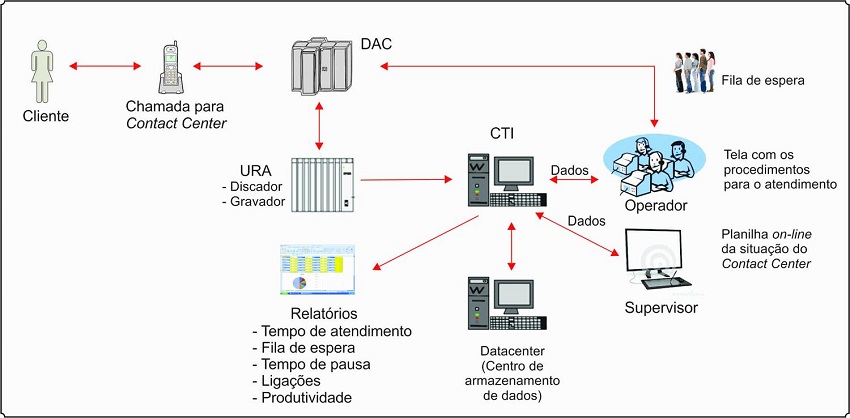 O aumento da produtividade e a maior eficiência dos Contact Centers estão associados ao uso de determinados sistemas técnicos, tais como o Distribuidor Automático de Chamadas (DAC); a “Telefonia Integrada ao Computador”, denominada de Computer-Integrated Telephony (CTI) e, especialmente, o VOIP, Voz Sobre Protocolo de Internet (sigla em inglês).