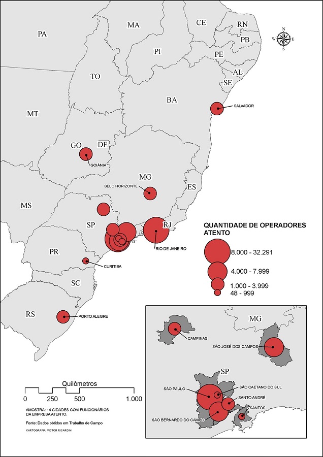A topologia das empresas Atento e Contax, demonstrou como entre as grandes corporações há uma tendência na última década de manutenção das unidades que prestam serviços mais complexos em áreas com maior “densidade informacional” (SANTOS, 1996), isto é, em pontos facilmente conectados com qualquer parte do globo. Enquanto as centrais de atendimento (unidades de operação) localizam-se, usualmente, em áreas desvalorizadas, onde os salários dos operadores são menores, as oportunidades de emprego são escassas e um grande contingente, especialmente, de mulheres jovens se submete às condições precárias de trabalho.