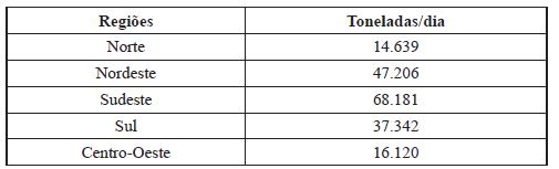 De acordo com o IBGE (2010), por exemplo, a quantidade diária coletada dos resíduos sólidos, no conjunto dos municípios, foi de 183.488 toneladas; desse total, 156.979 toneladas provindas dos domicílios, enquanto no ano 2000, foram coletados diariamente no Brasil 125.281 toneladas/dia (IBGE, 2000). Com uma ampliação de 31.698 toneladas diárias entre o período das pesquisas.