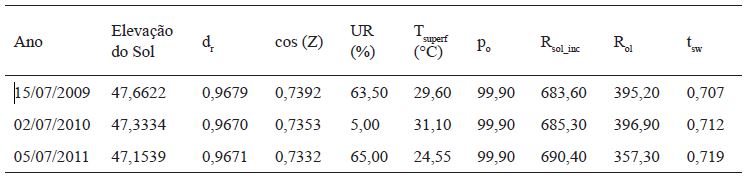 Os dados micrometeorológicos descritos na Tabela 1 foram obtidos no Instituto Nacional de Meteorologia (INMET) cuja estação está localizada em Humaitá/AM.