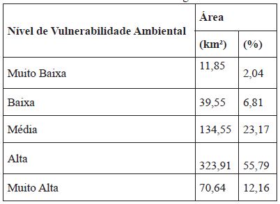 Deste modo, a identificação das cinco classes de vulnerabilidade apresentada neste estudo aponta alguns critérios de suporte para o planejamento do uso e da ocupação da terra, principalmente, naquelas áreas que apresentaram vulnerabilidade ambiental muito alta. Para estas áreas se devem estabelecer limitações de uso e ocupação amparadas pela legislação ambiental e pelos instrumentos de gestão vigentes, visando a conservação e restauração dos ecossistemas presentes.