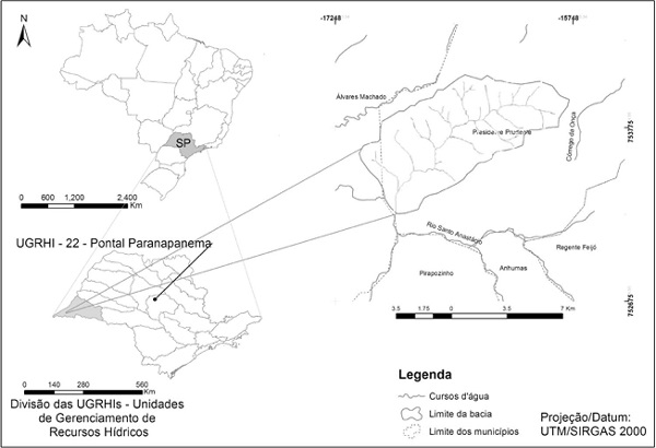 O Estado de São Paulo foi divido em 22 Unidades de Gerenciamento de Recursos Hídricos (UGRHI) pela Lei Estadual 9034/94 que aprovou o Plano Estadual de Recursos Hídricos. Os principais rios desta UGRHI são os rios Paranapanema, Paraná, Santo Anastácio e Pirapozinho (CPTI, 1999). A Bacia do manancial Santo Anastácio possui área de 198,30 km2, está inserida na UGRHI-22.