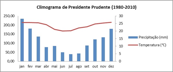 De acordo com Boin (2000), o clima da área de estudo é caracterizado pela presença de um período seco (inverno), sob influência predominante dos sistemas polares, e um período chuvoso (verão), influenciado pelos sistemas tropicais.