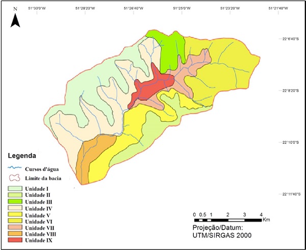 A integração dos dados que caracterizam o meio físico da bacia hidrográfica como, geomorfologia, tipos de solos, declividades e hipsometria, geram em síntese as unidades do meio físico.