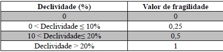 O valor dos pesos atribuídos para cada intervalo de declividade é apresentado na Tabela 2.