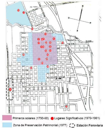 Asimismo, en 1977, el gobierno municipal contó con la visita y colaboración del Arq. Jorge Gazzaneo, que en ese momento era el presidente de ICOMOS argentina, quien propuso delimitar el CH de la ciudad. Esa fue la primera vez que el área era definida bajo legislación (Decreto Municipal 375/1977 y Ordenanza 1043/1978), denominándola Zona de Preservación Patrimonial (ZPP). Comprende cerca de 100 manzanas de la ciudad en un eje sur-norte en dirección hacia el río Areco, junto al Parque Criollo y Museo y (Figura 02). A partir de ese momento es que las políticas de conservación patrimonial se focalizaron en la ZPP, posteriormente incorporada al Plan Regulador de 1984. La normativa 1043/1978 intentaba establecer requisitos que permitieran conservar ciertas características del CH, entre ellas: regular qué tipo de intervenciones eran permitidas; orientar el tipo de construcciones nuevas para que no irrumpiera con la fisonomía del CH, fomentando el uso de materiales y colores “tradicionales”; mantener las líneas horizontales teniendo en consideración las fachadas de la cuadra, respetando a su vez los acabados como el “ladrillo a la vista” o revoque y terminación con pintura u hormigón (Informe Técnico Municipal, 2006).