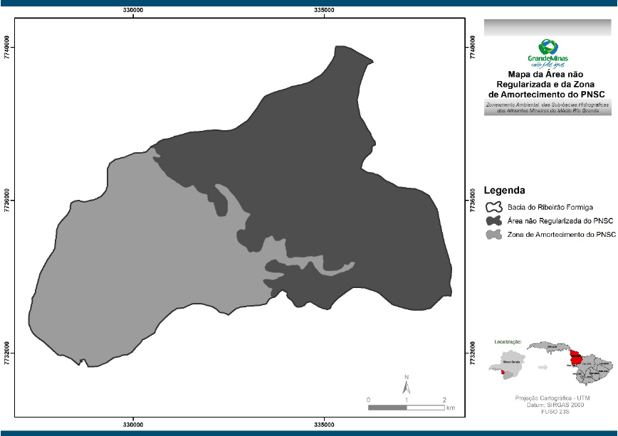 A Bacia do Ribeirão Formiga tem aproximadamente metade de sua área inserida no PNSC com a situação fundiária ainda não regularizada; o restante situa-se na Zona de Amortecimento (ZA). O Ribeirão Formiga desagua no Rio Grande, na represa da Usina Hidroelétrica Mascarenhas de Moraes.
