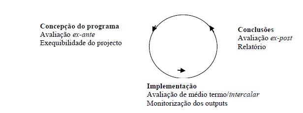o momento de encerramento do programa, a partir do qual é possível iniciar o processo de avaliação ex post. Essa fase centra as suas preocupações na análise dos efeitos, imediatos e de longo prazo, diretos e indiretos.