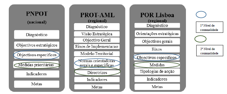 A realização dessas duas etapas mostrou a existência de uma coerência entre os três instrumentos para os seguintes setores/domínios de intervenção: turismo; ambiente; sistema urbano e áreas urbanas/cidades; e transportes, mobilidade e acessibilidade. Em relação aos demais domínios/setores, encontramos algumas especificidades no POR Lisboa, que retratam a sua natureza mais aplicada ao desenvolvimento econômico e regional. Os setores de economia e empresas, bem como as rubricas relacionadas com a inclusão social, correspondem a 28% dos objetivos e das medidas, enquanto que, no caso do PROT-AML e do PNPOT, destacam-se as medidas relacionadas aos setores da agricultura e da floresta, da cultura e do patrimônio cultural, do saneamento básico e da energia, que têm maior representatividade nos documentos estratégicos de ordenamento.