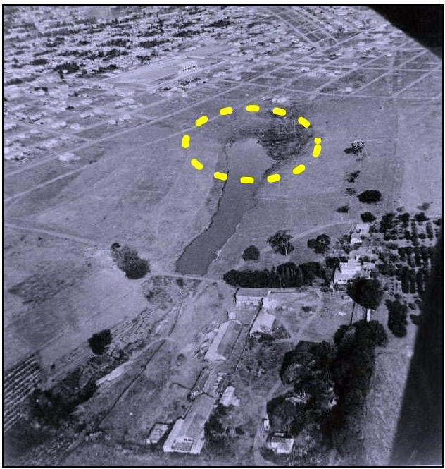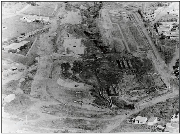 As imagens cedidas pelo Acervo Pró-Memória de São Carlos, das décadas de 1960 e 1980, mostram alguns aspectos geológicos e ambientais do histórico da área. Na década de 1960 as nascentes não possuíam cobertura vegetal (Figura 3, detalhe) e originavam uma grande lagoa, desprovida de vegetação no seu entorno. Na década de 1980, nota-se erosão em todo perímetro da área com o parque em construção (Figura 4). A vegetação ciliar continuava ausente, evidenciando que a área não teve reflorestamento entre o primeiro e o segundo registro fotográfico, agravando os processos erosivos. Na Figura 5 observa-se o parque com configuração semelhante à atual, com quadras de esporte, anfiteatro e parque infantil, mas sem cuidados com as Áreas de Preservação Permanente e as nascentes.