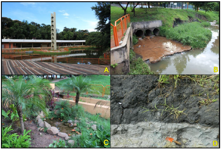 No parque também existe o afloramento de argila (Figura 6 - D) em talude do córrego Medeiros, onde crianças retiravam argila para brincar por volta do ano de 1982, conforme relatado por Jeferson Barilli, antigo morador da região, que utilizava a área para recreação.