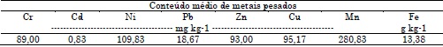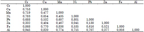 As concentrações dos metais pesados analisados foram apresentadas na Tabela 2, ressaltando-se que o elemento Cd não foi detectado, estando ausente nos pontos avaliados, corroborando com Paiva et al. (2010) que, ao avaliarem o mesmo trecho em análise, não detectaram Cr e Cd em sedimento.