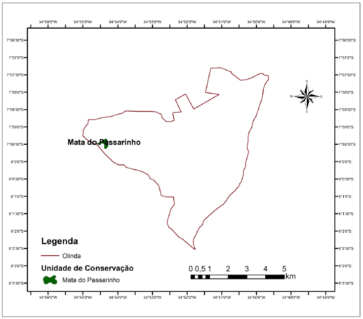 A Mata do Passarinho está inserida no bairro de Passarinho e é circundada pelos bairros de Alto da Bondade, Caixa d’água, Águas Compridas, Córrego dos Carneiros e Córrego do Abacaxi, todos pertencentes ao município de Olinda. De acordo com dados de seu plano de manejo, a FURB Mata do Passarinho (mapa 1) é o maior remanescente de Floresta Ombrófila Mista IBGE (2012) do município de Olinda.