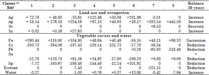 About Sepotuba River, different stages of appropriation, according to the conditions of each sub-basin, were identified from the ATI. Of the eight units mapped, six showed a change of class for the period between 1986-2016. In the land use assessment of 1986, six sub-basins were classified as Slightly Degraded, a condition different from that identified by Lorenzon (2016) for the Cabaçal River. Four units are areas that form important affluents.