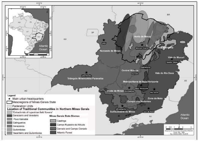 There are a number of environmental conflicts in Brazil, which force the “disterritorialization” of the indigenous peoples and traditional communities. Hydroelectric projects, mining, urban expansion, projects and entrepreneurship for reproduction and concentration of capital and even creation of Conservation Units cause the expulsion of thousands of people from their living spaces around Brazil. In the specific context of northern Minas Gerais, the insertion of this region in the scope of capitalist expansion was the trigger to a period of expropriation, de-structuring, and restructuring of traditional lifestyles from the late 1970s when the native vegetation of the Brazilian savanna in the plateaus was replaced by massive eucalyptus and Pinus. However, the cycle of socio-environmental degradation and homogenization by the expansion of the capitalist development matrix did not undermine the non-capitalist logic that prevailed in the region, although it became hegemonic (COSTA, 2006). In this way, the way of life of peasant families and traditional peoples and communities in northern Minas Gerais still survives in “complementarity and sometimes in opposition to the constructive logic of distinct territorialities and social spaces” (COSTA, 2006, p.28).