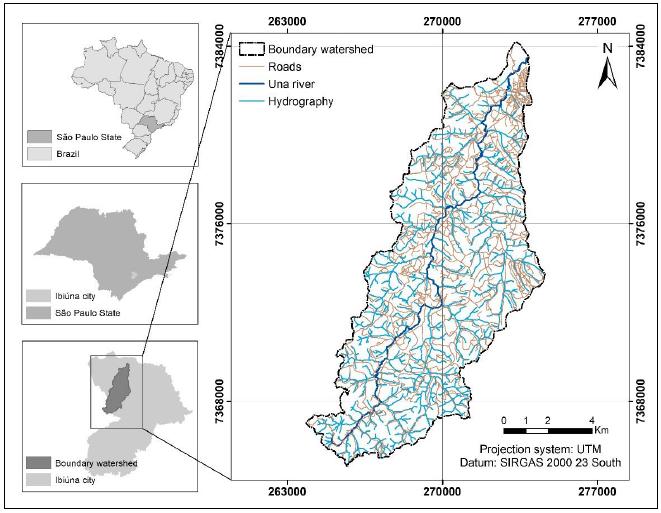 The study was carried out in the Una river watershed, located in Ibiúna city, southeastern Brazil (Figure 1).