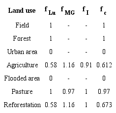 Looking for a comparison, the CETESB’s inventory (2012) for São Paulo State identified that conversion from agriculture to urban areas between 1994 and 2008 accounted for an emission equivalent to 444.26 GgCO2. This value is much higher than that obtained in the watershed (0.0142 GgCO2), since they have different scales.