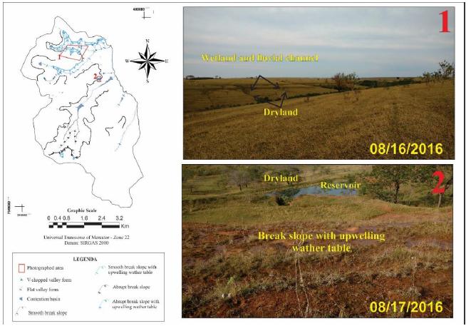 Thus, the negative correlation between abrupt break slopes with an upwelling of water table and V-shaped valley forms is disregarded when evaluated together with mappings and records of the field, since conservation techniques and reservoirs were variables that mostly interfered in valley forms. The increase in water infiltration due to conservation techniques and the impoundment of water transformed channels with V-shaped valley forms into pluvial channels (Figure 8).